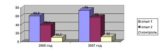 и величиной верхушечных и боковых почек в результатах опыта и контроля, что