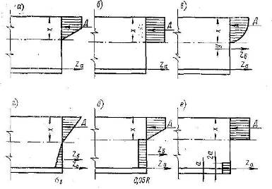 Рис. 8. Сравнительные эпюры напряжений в расчетных сечениях