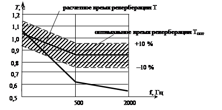 реверберации и сравнения его с оптимальным временем реверберации представляются