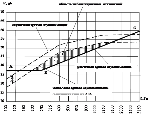 кривой звукоизоляции в третьоктавной полосе со среднегеометрической частотой