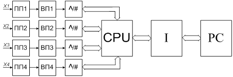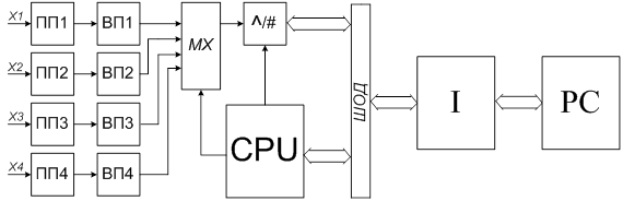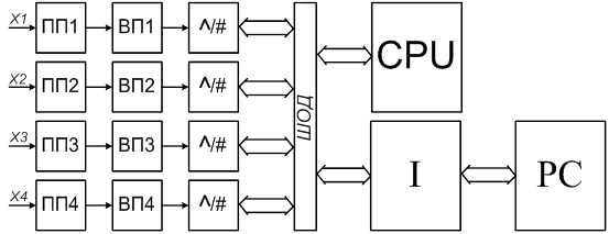 канал має свою адресу. Виходи всіх АЦП підключені до шини обміну даними. До шини