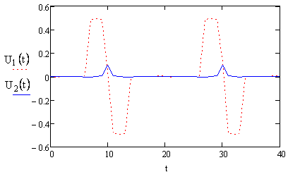изобразил график выходного сигнала и сравнил его с входным. Выходной сигнал по