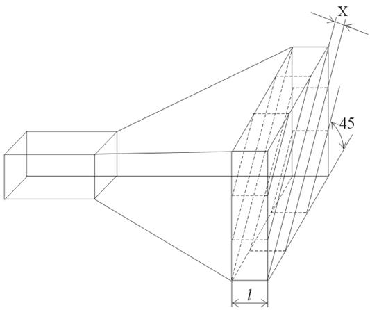 Найдем расстояние от раскрыва до горловины рупора,