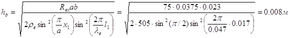 Ом- волновое сопротивление волновода;