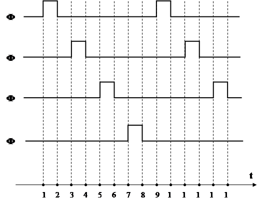синхроимпульсов Ф1, Ф2, Ф3 или Ф4 осуществляется с помощью мультиплексора