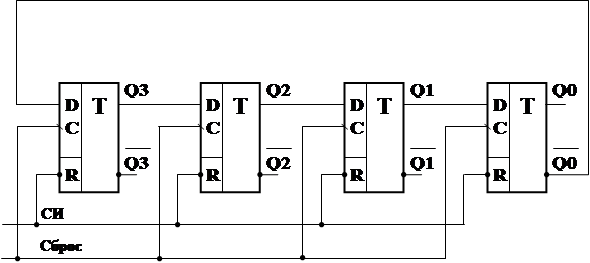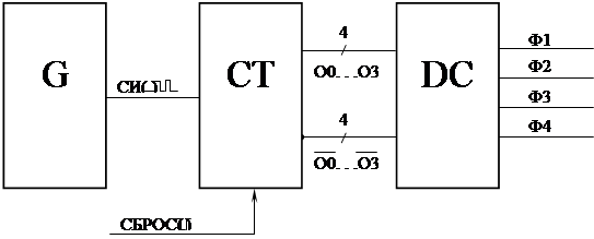 устройства – счетчика и дешифратора. Тактовые синхроимпульсы на С-вход счетчика