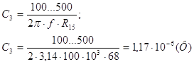 знаючи межі, в яких змінюється опір проведемо розрахунок ємності конденсатора.
