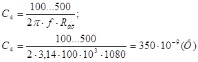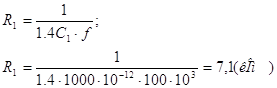 задавшись ємністю конденсатора С1=1000(пФ) розрахуємо значення