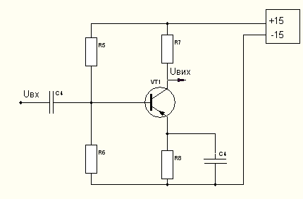 номінали елементів так, щоб коефіцієнт підсилення по напрузі даного каскаду