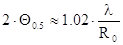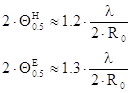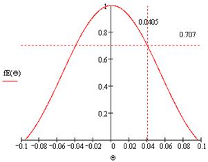 2QЕ0.5 = 82 мрад - ширина ДН на уровне