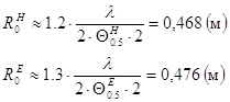 2QН0.5 = 77 мрад - ширина ДН на уровне
