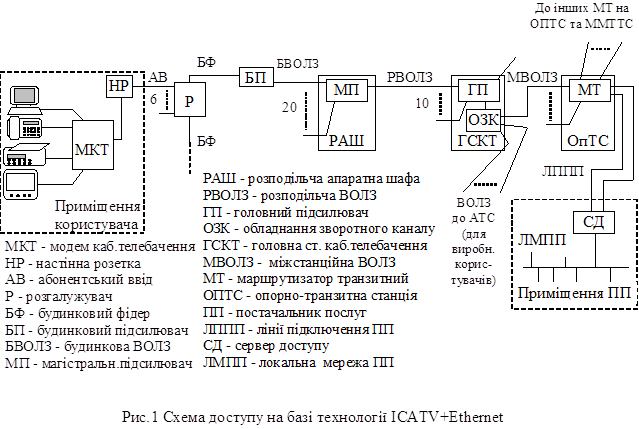 мережа доступу (МД) на основі технології ICATV+ Ethernet (Мережа інтерактивного