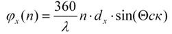 фазовый сдвиг φ между двумя произвольными излучателями, отстоящими друг от