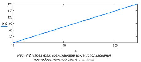 последовательной схемы питания. Оценим возникающий набег фазы по формуле: