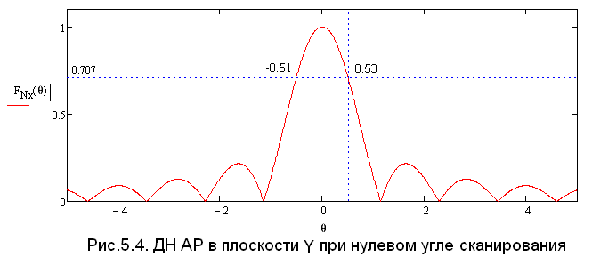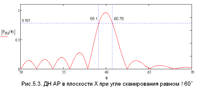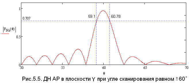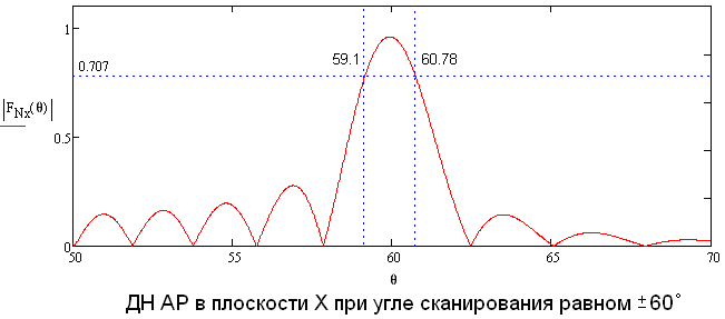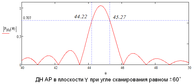 Тогда при максимальном угле сканирования в 50°, амплитуда главного лепестка