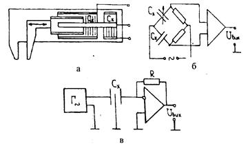 електричних вимірювальних кіл такого штангенциркуля наведені на рисунках 2, б,