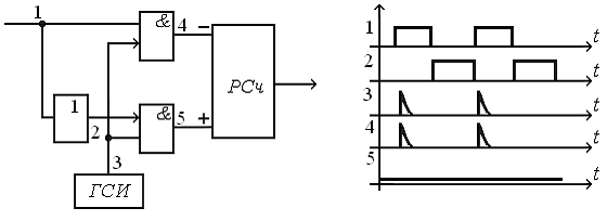 Рис.12. Схема и временные диаграммы функционирования цифрового