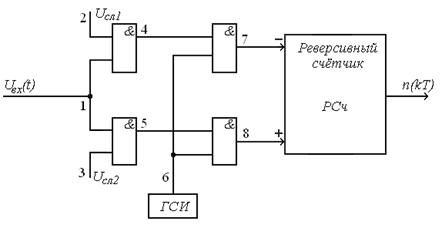 реверсивного счетчика формируется код, пропорциональный разности длительностей