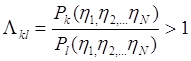 распознавания (различения) при условии наличия портрета (сигнала) К-го класса
