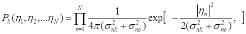 вероятности комплексных амплитуд принятого сигнала по элементам пространства