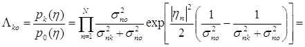 правдоподобия зашумленного портрета (сигнала) К-го класса на фоне зашумленного