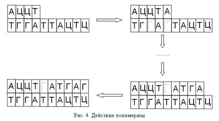 некоторому алгоритму и записывает на другую ленту. Полимераза также