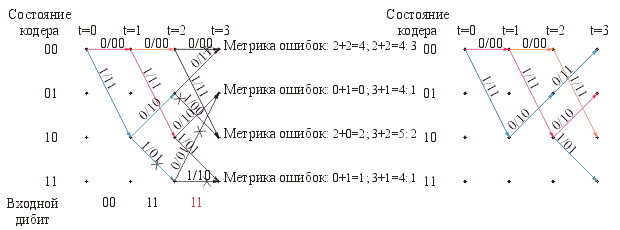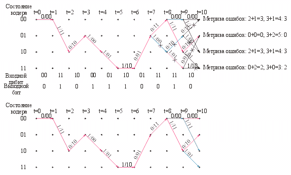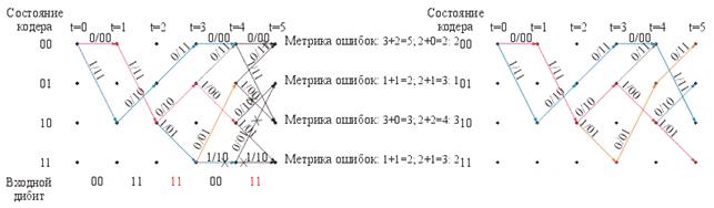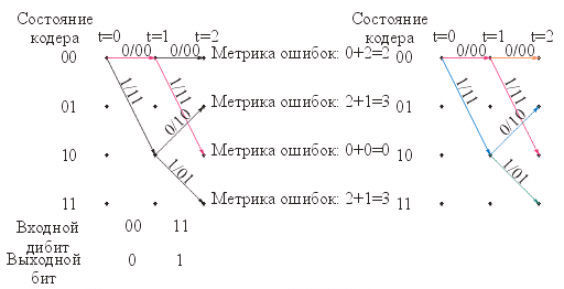 дибита количество возможных путей с различной метрикой накопленных ошибок