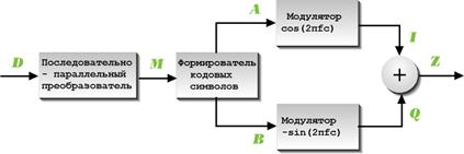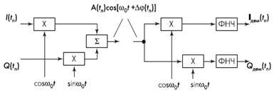 квадратурной Q составляющих несущего колебания. На последнем этапе