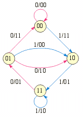 состояния 10 была равной 2, то при переходе из этого состояния в состояние 01