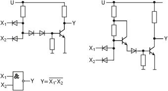 транзисторов, а функция И — подачей инверсных управляющих сигналов на входе и
