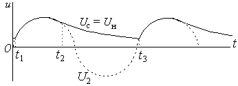 – t3) напряжение Uс > U2 – диод закрыт, а