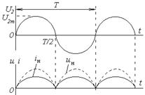 (Iн=0) выпрямленное напряжение равно амплитудному значению Umхх,