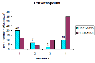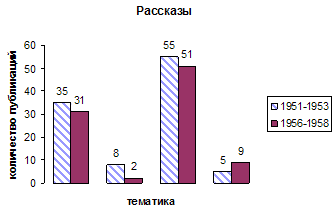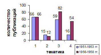 тем публикаций в журналах 1951-1953 и 1956-1958 годов