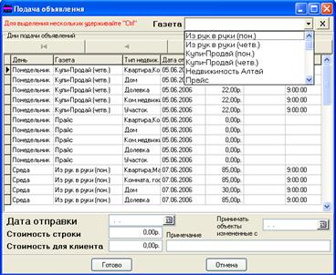 автоматизация работы менеджера по рекламе фирмы по купле-продаже недвижимости.