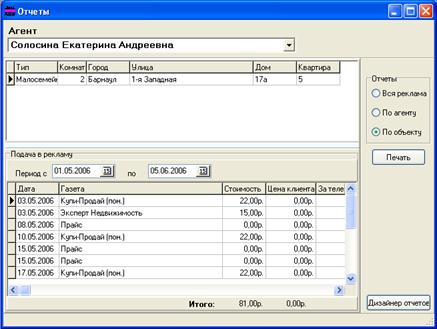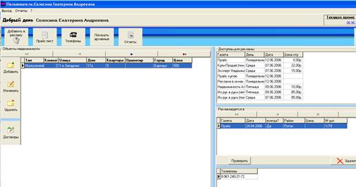 была осуществлена автоматизация работы менеджера фирмы по рекламе недвижимости.
