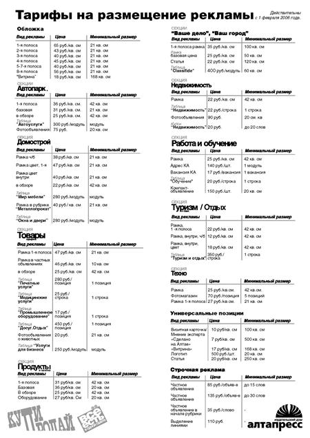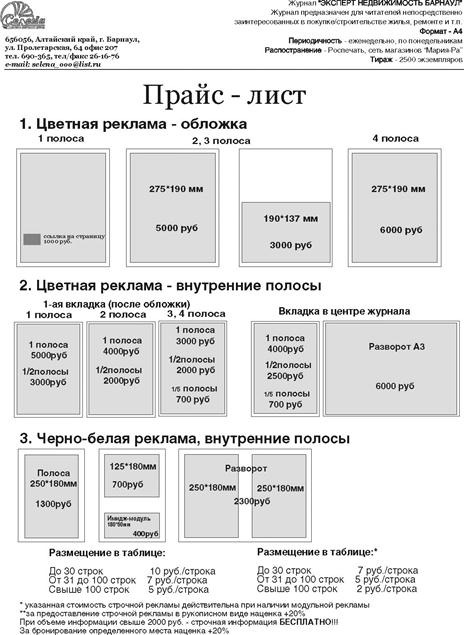 Д Прайс-лист газеты «Недвижимость Алтай»
