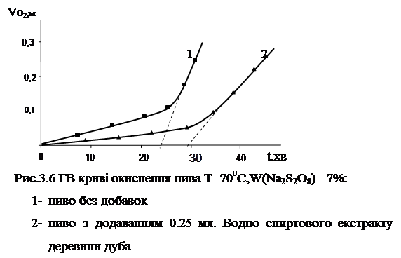кривых при окислении пива, которые по виду аналогичны с соответствующими кривыми