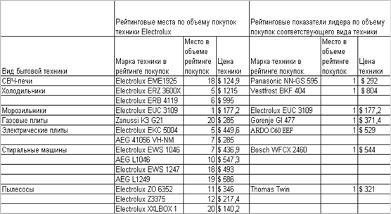 Покупательский рейтинг в секторе пылесосов и позиция товаров марки “Electrolux"