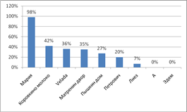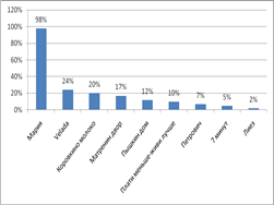 1. Структура вспоминания респондентами СТМ ТС «Мария-Ра» (без подсказки)