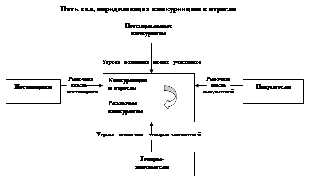 Майклом Портером, который учитывает 5 реальных сил, действующих на рынке