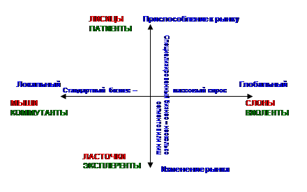 активный поиск рыночных ниш. Для них характерны активные оборонительные меры в