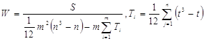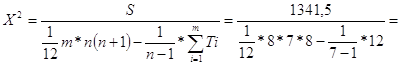 Таблица 1. Данные о мнениях (выставленных рангах) экспертов