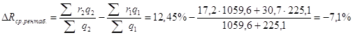 относительное изменение прибыли под влиянием изменения средней рентабельности: