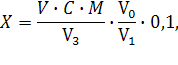 кислотность (Х) в расчете на яблочную кислоту в % вычисляют по формуле: