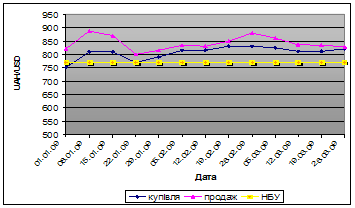 Євро (5500,00 / 11,6 = 474,1). Наприкінці цього періоду (26.03.2009р.) конверсійна