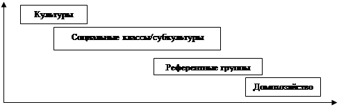 сути, разнохарактерное влияние групп различного масштаба на потребителя. Схема