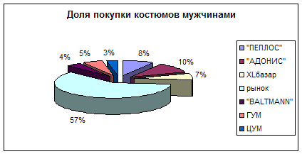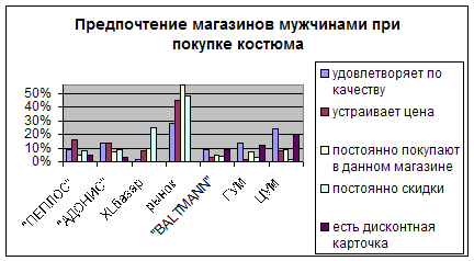 опрошенных покупают костюм в магазинах это «ПЕПЛОС» и «АДОНИС». «АДОНИС»