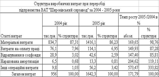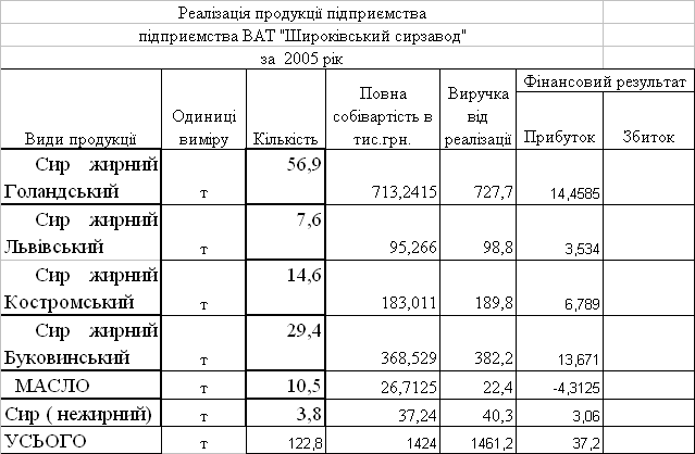 Курсовая работа: Економiчна ефективнiсть переробки молока та шляхiв її пiдвищення на прикладi ВАТ "Широкiвський сирзавод" Днiпропетровської областi