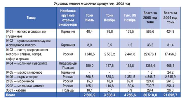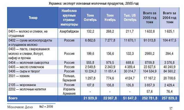 молокопродуктів та його основних сегментів (виробництво, реалізація, імпорт,