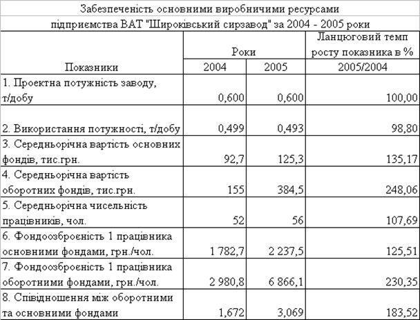 2.2 Забезпеченість ВАТ «Широківський сирзавод» основними